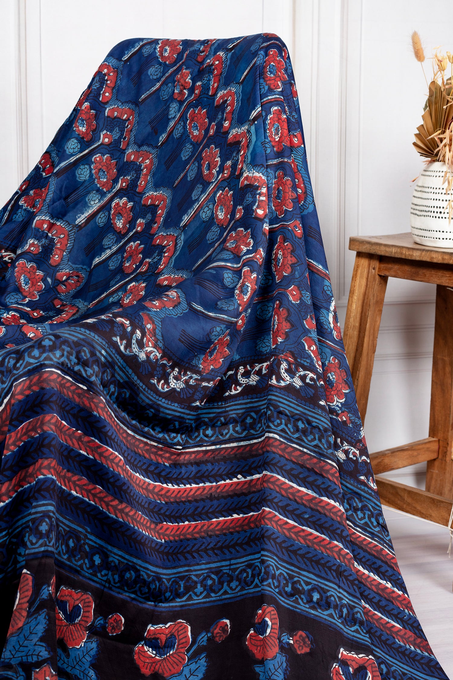 Elegant Ajrakh-inspired floral motifs with rich detailing