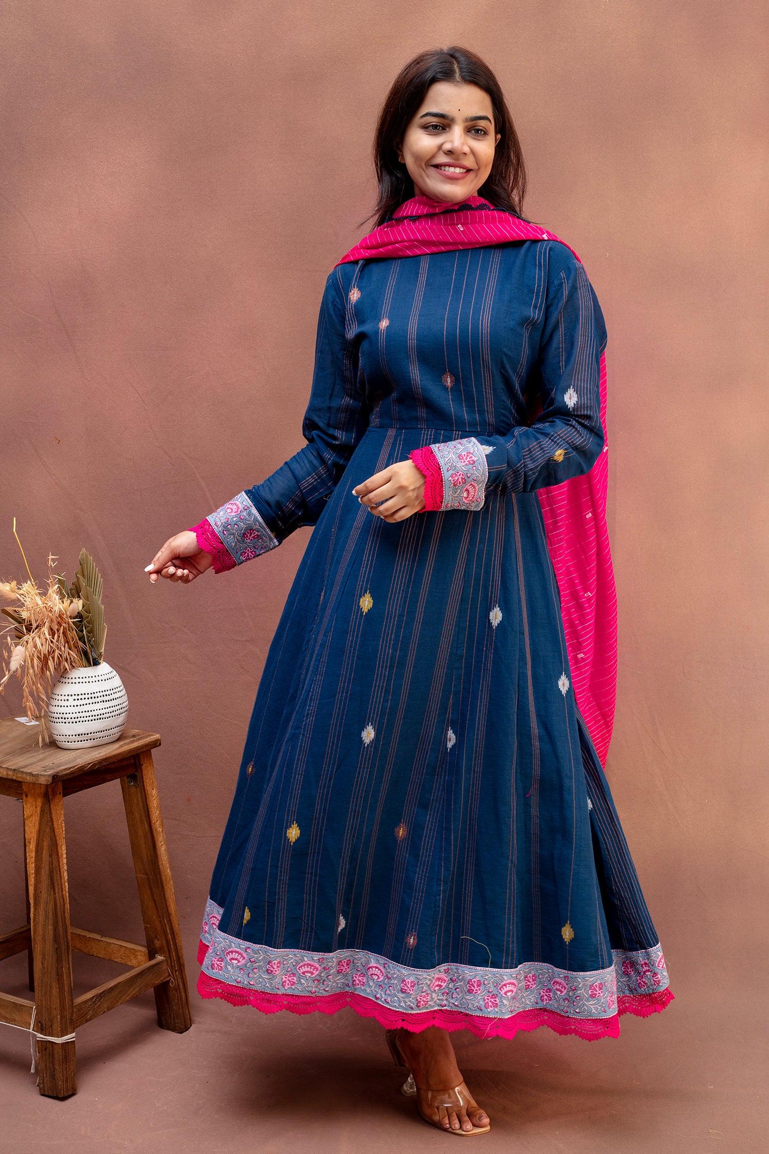 Indigo & Fuchsia Pure Cotton Anarkali & Dupatta Set